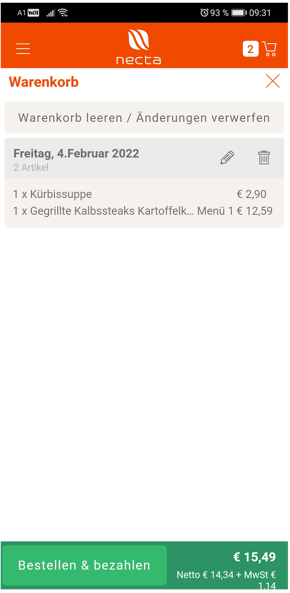 Es wird dann bei jedem Produkt in der Auswahl der Portionspreis und im Warenkorb auch dei Gesamtsumme der Bestellung angezeigt.