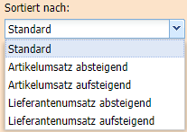 | herstellerbezogen | Durch Setzen des Schalters erfolgt die Gruppierung bzw. Summierung nicht je Lieferant, sondern je Hersteller. |