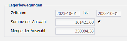 | Summe der Auswahl | Anzeige der Summe aller Lagerbewegungen in €. |