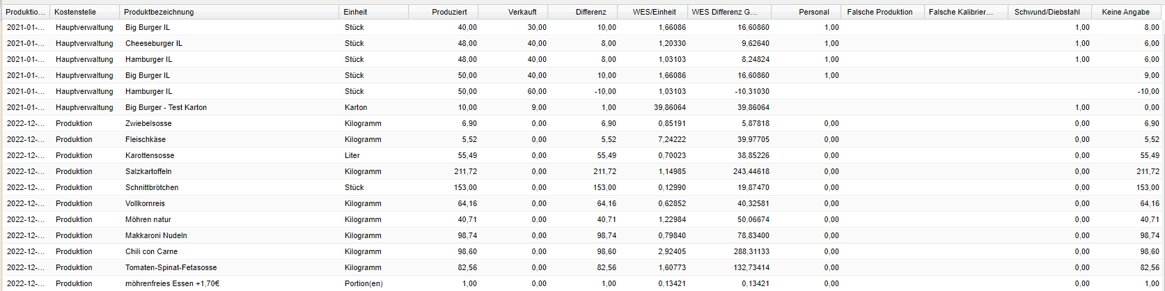 Hinterlegen der Mengen, die auf Grund von falscher Produktion zu einer Differenz geführt haben. |