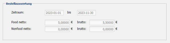 | Nonfood netto / brutto | Anzeige der Netto- und Bruttobestellsumme für Non-Foodprodukte. |