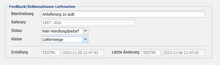 | Referenz | Anzeige des zuvor ausgewählten Lieferanten. |