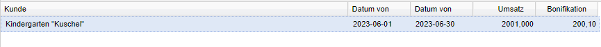 | Kunde | Anzeige aller Kunden, welche für den gewählten Zeitraum eine Bonifikation hinterlegt haben. |