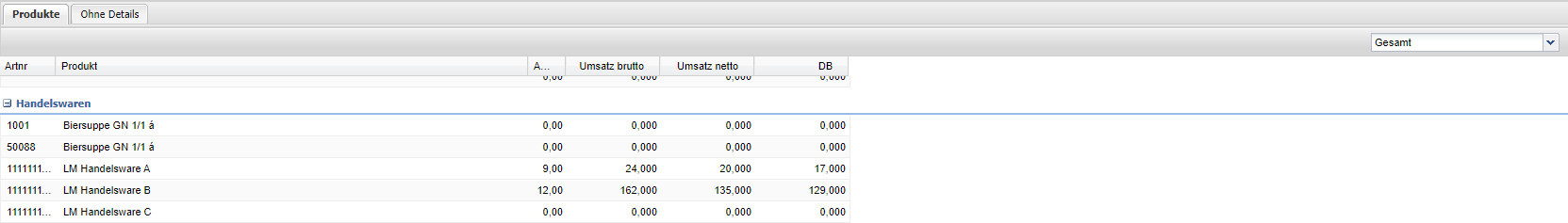 | DB | Anzeige des Deckungsbeitrags. (Nettoumsatz - Wareneiinsatz) |