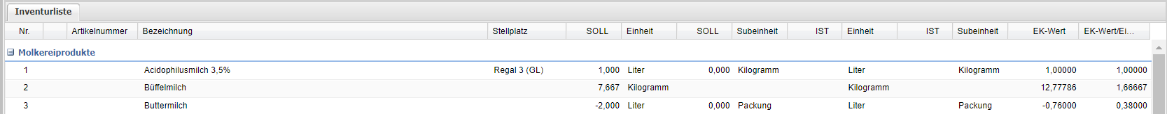 Anzeige der berechneten SOLL-Lagerwerte zum Stichtag. |