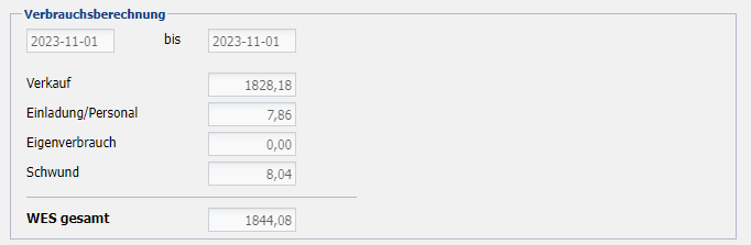 | Verkauf | Anzeige des berechneten Verbrauchs aus dem Verkauf. |