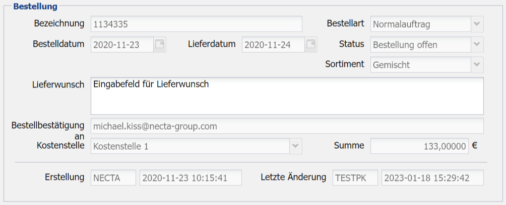| Summe | Anzeige der Nettosumme der Bestellung. |
