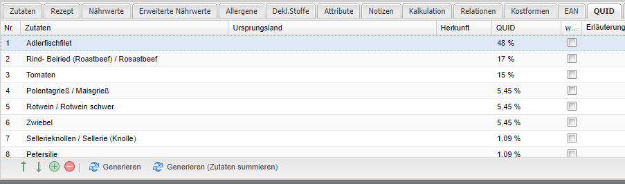 | Herkunft | Anzeige der Herkunft der Zutat |