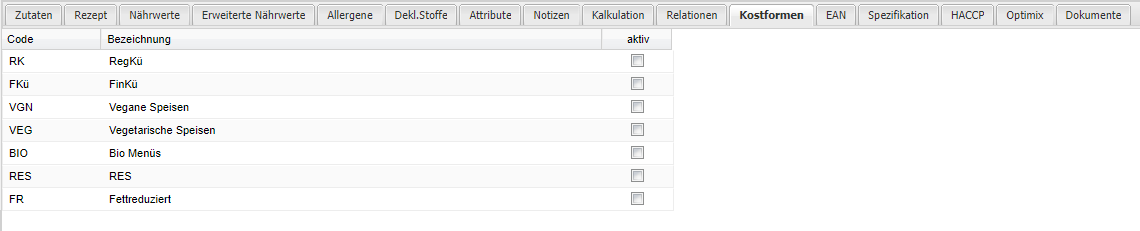 | aktiv | Durch Setzen des Schalters wird das Verkaufsprodukt einer Kostform zugeordnet. |