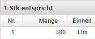 | Menge | Hinterlegen der Menge in Relation zur Kalkulationsmenge und -einheit. |
