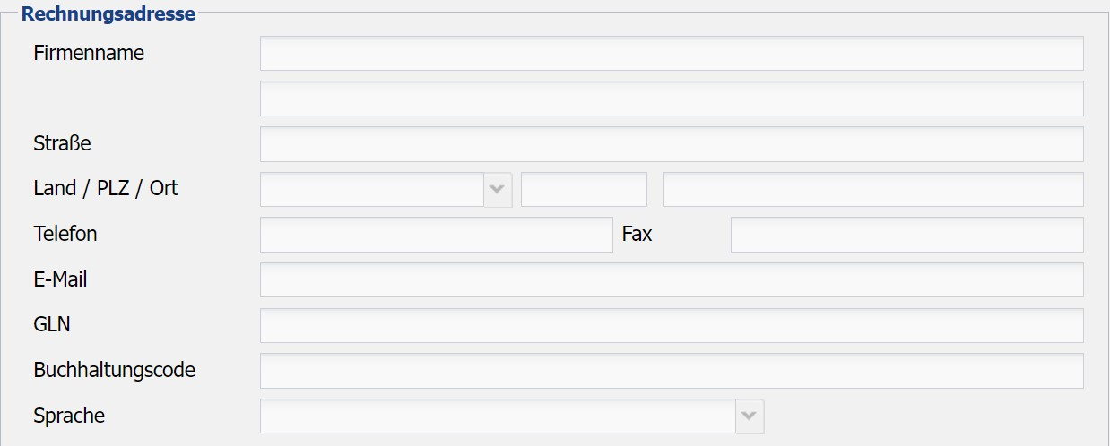 | Firmenname | Hinterlegen der Rechnungsanschrift |