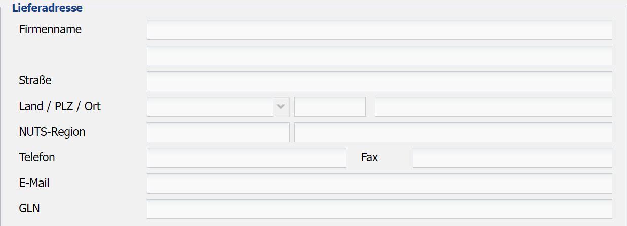 | GLN | Hinterlegen der (Liefer-) GLN. Rechnungs-GLN und Liefer-GLN können sich unterscheiden. |