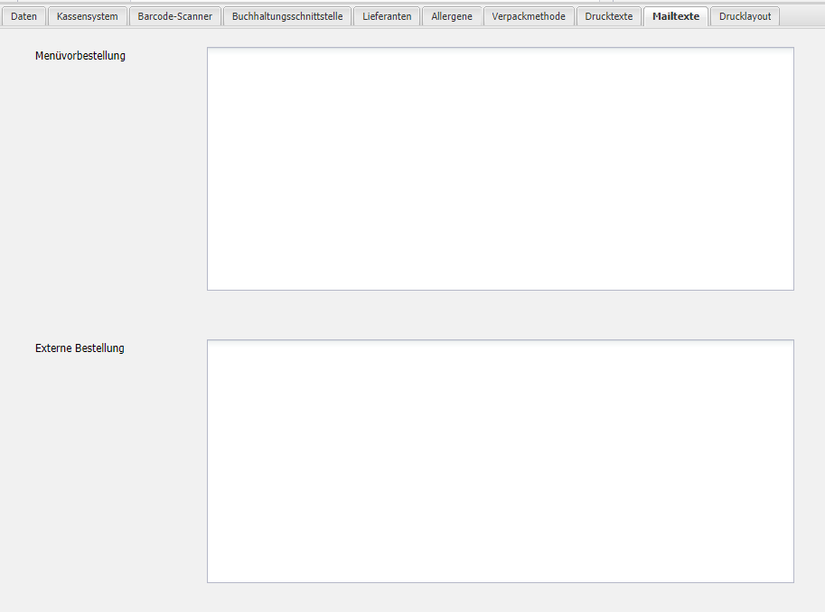 | Menüvorbestellung | Hinterlegen eines alternativen Mailtextes für den automatischen Mailversand. |