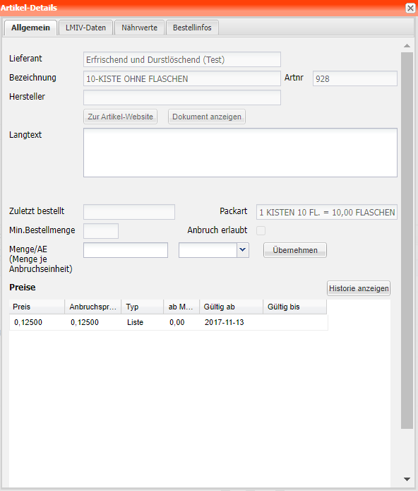 | Artikeldetails | An dieser Stelle können die vom Lieferanten übermittelten bzw. manuell importierten Artikel-Details angezeigt werden. |
