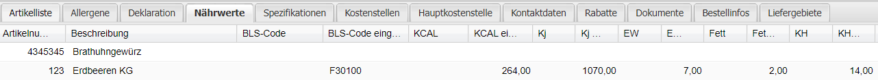 | BLS-Code | Bundeslebensmittelschlüssel vom Lieferanten übermittelt |