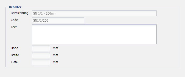 Bezeichnung Hinterlegen der Behälterbezeichnung.
