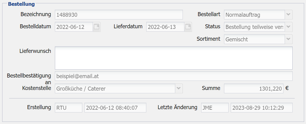 Bestelldatum: Hier wird automatisch der heutige Tag hinterlegt. Dies kann jedoch manuell abgeändert werden.
