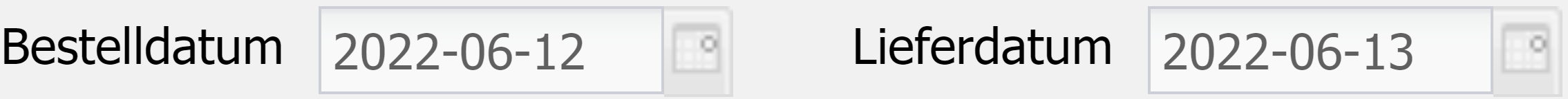 Lieferdatum: Beim Lieferdatum wird automatisch der Folgetag des Bestelldatums hinterlegt. Hier können Sie einfach das gewünschte Lieferdatum auswählen.