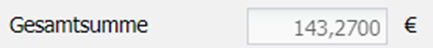 Hier wird die Gesamteinkaufssumme für den ausgewählten Zeitraum angezeigt.