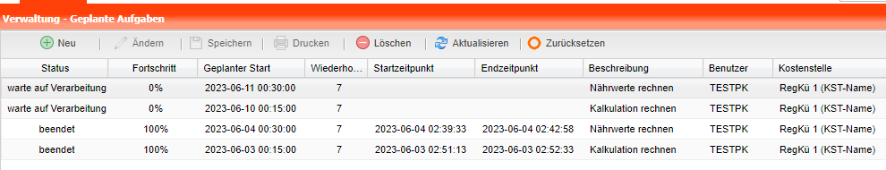 Anzeige des tatsächlichen Start- und Endzeitpunkts nach Beendigung der geplanten Aufgabe.