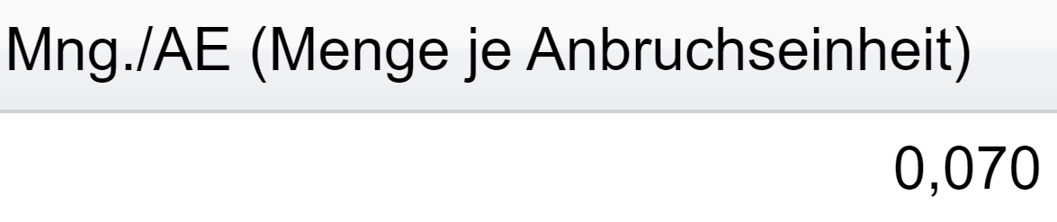 Die Menge in der Spalte "Menge AE" wird mit der Menge in der Spalte "Mng./AE" multipliziert.