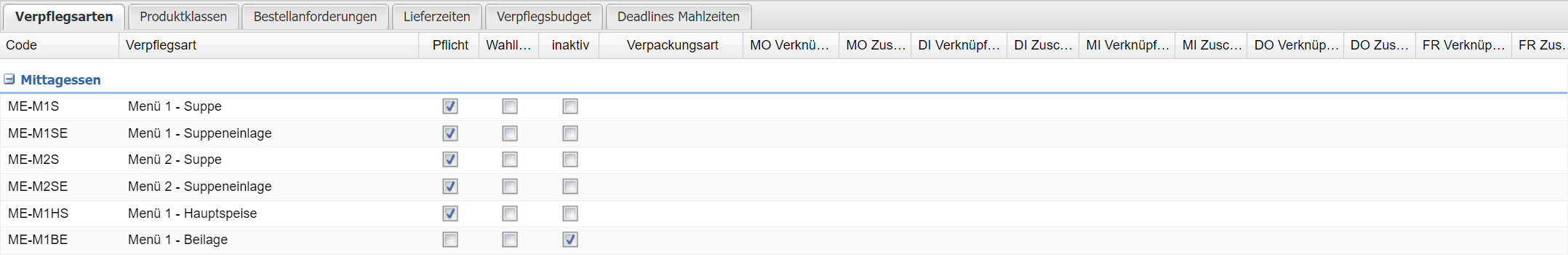 - Aktivieren von Verpflegsarten und deren Verknüpfungen