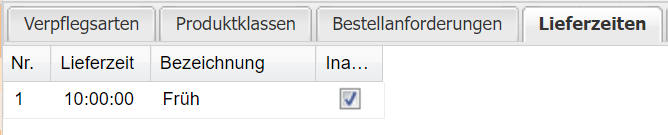 Hier können unterschiedliche Lieferzeiten hinterlegt werden, welche bei der Menüvorbestellung ausgewählt werden können.