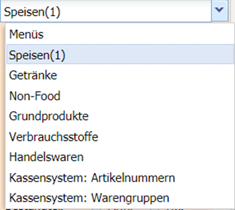 Produktklasse: Auswahl der richtigen Produktklasse. Menüklassifizierung, wie z.B. Mittagsmenü, Abendmenü, Feiertagsmenü usw. Die Menüs können bei der Suche zu einem späteren Zeitpunkt über die Filterung auf Produktklasse schneller gefunden werden. Mittels Dropdown Liste auswählbar.