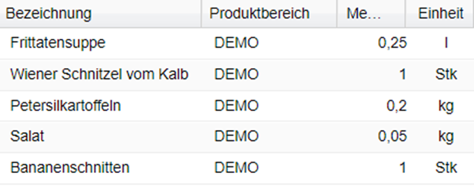 In diesem Fall ist die Kalkulationseinheit mit einer Portion hinterlegt. Das bedeutet, dass die Menge der Speisen in der Gängeliste hinterlegt werden muss, die man für ein vollständiges Menü benötigt.