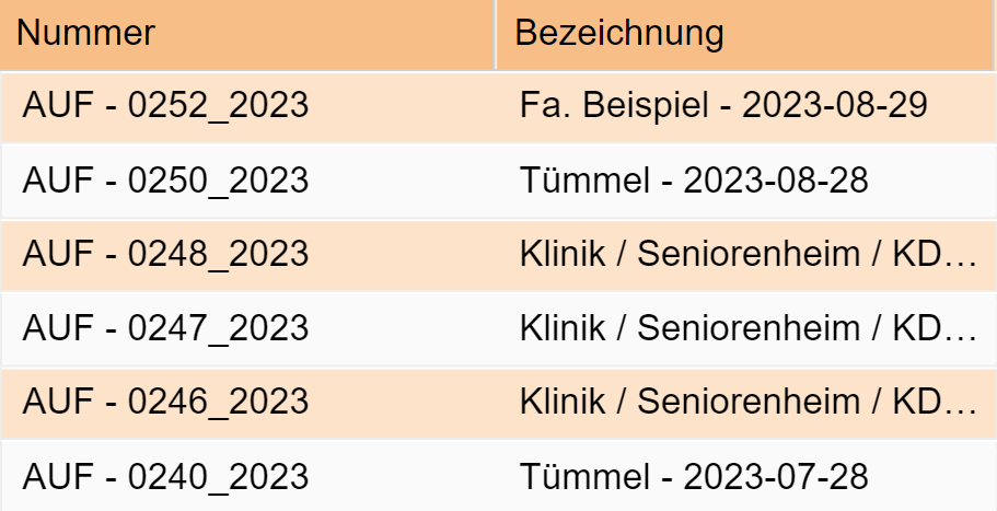 In der Ergebnisliste werden alle Aufträge angezeigt, welche den Suchkriterien entsprochen haben.