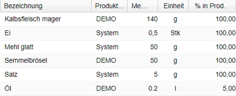 % in Prod. (Anteil der Zutat in der fertigen Speise)