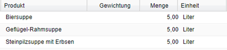 Per "Doppelklick" auf das gesuchte Produkt wird es in der Liste rechts hinzugefügt.