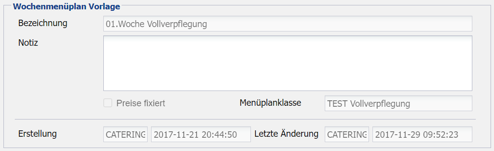 Im ersten Schritt wählt man die Menüplanklasse aus, für welche die Wochenmenüplan Vorlage erstellt werden soll.