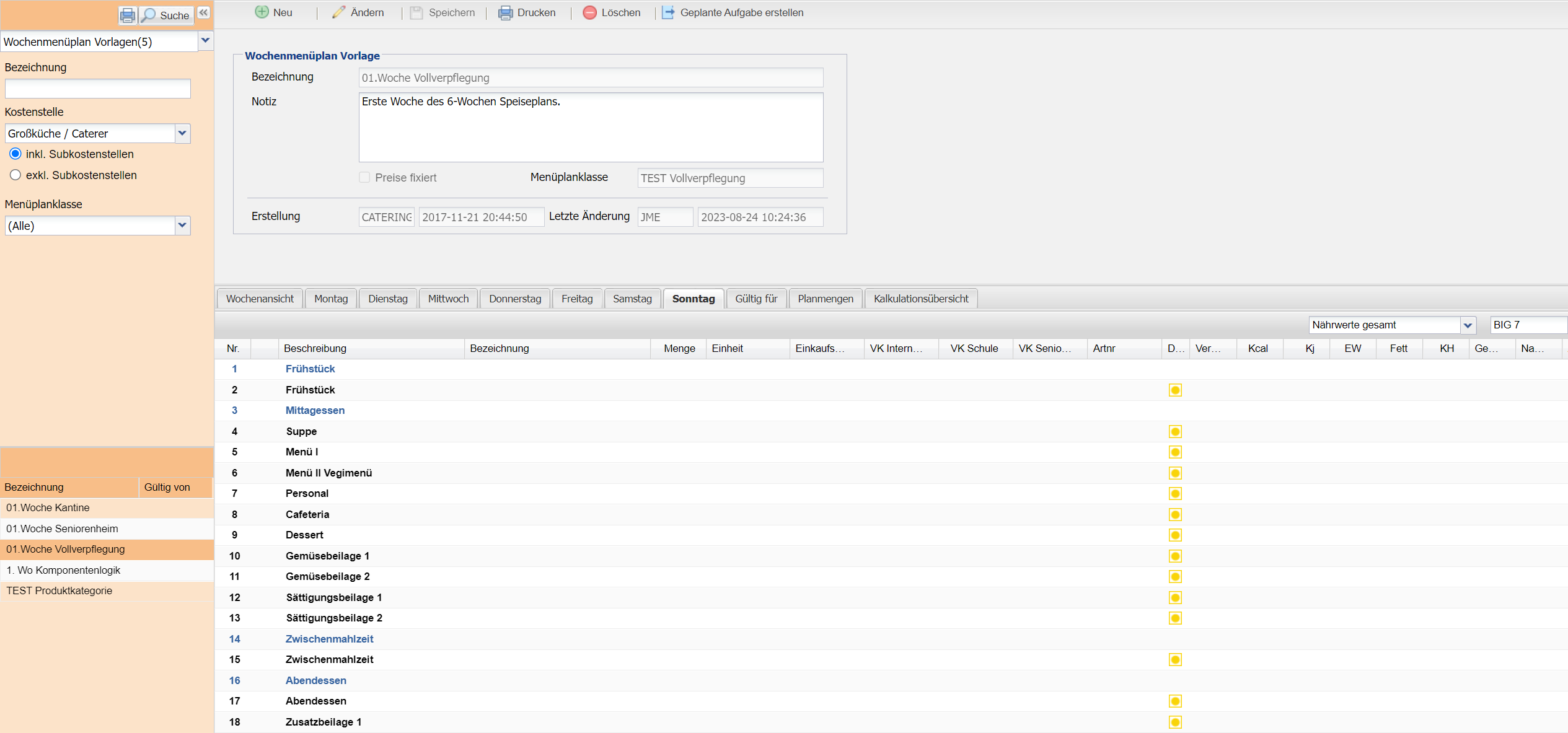 Sie finden Wochenmenüplan Vorlagen im Modul "Planung", unter dem Menüpunkt "Wochenmenüplanvorlagen":